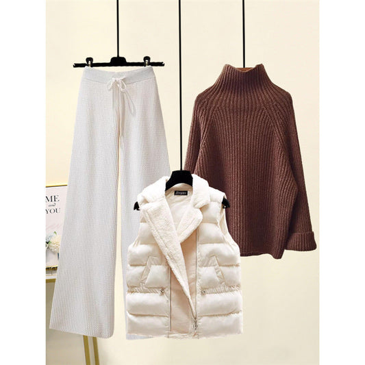 Жаночы вязаны камплект з трох частак - швэдар, кардіганы і штаны з высокай таліяй