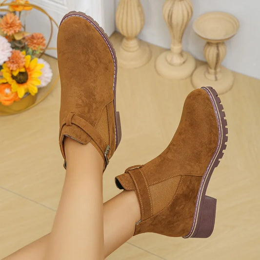 Sieviešu zamšādas puszābaki ar rāvējslēdzēju sānos