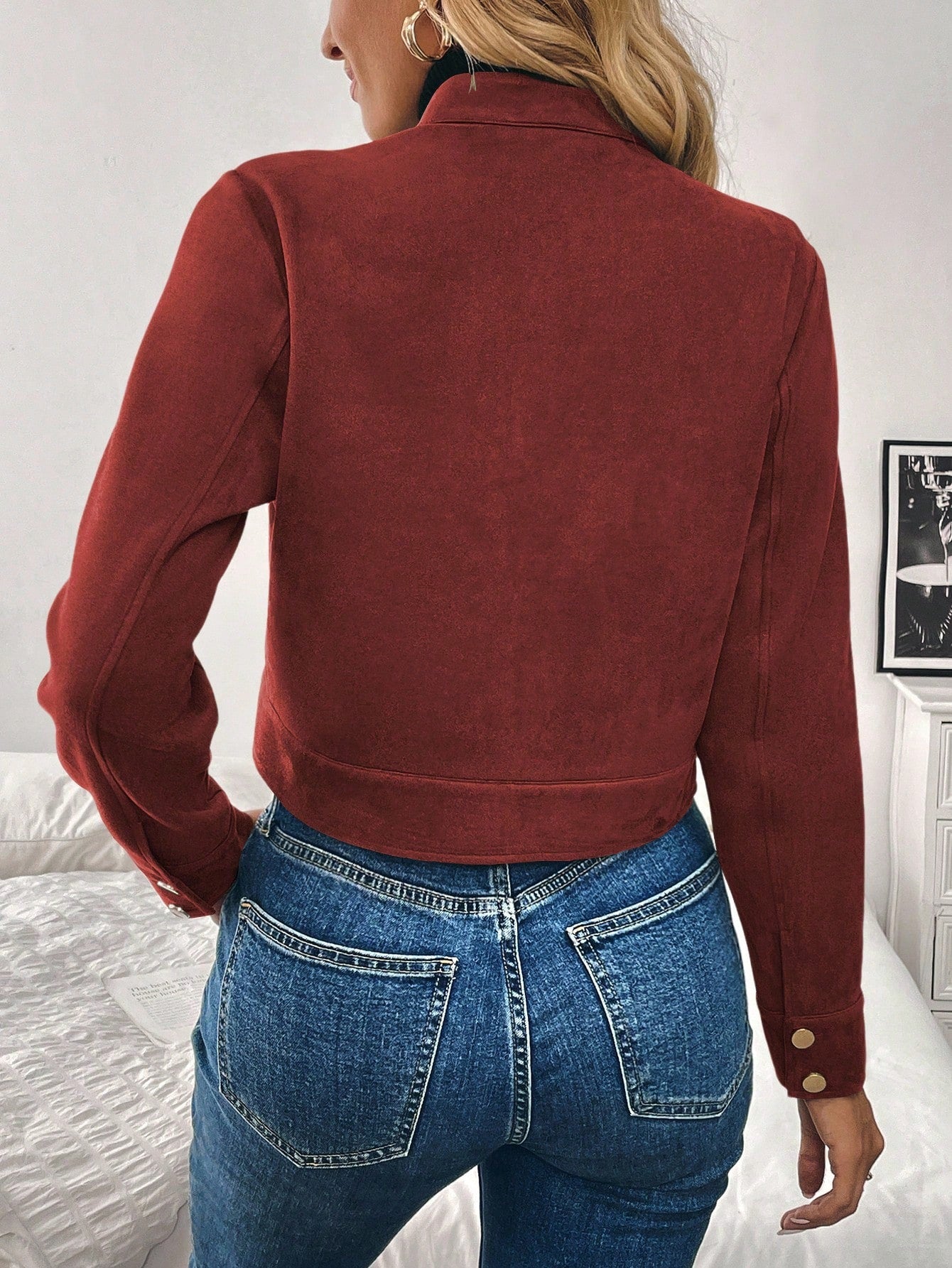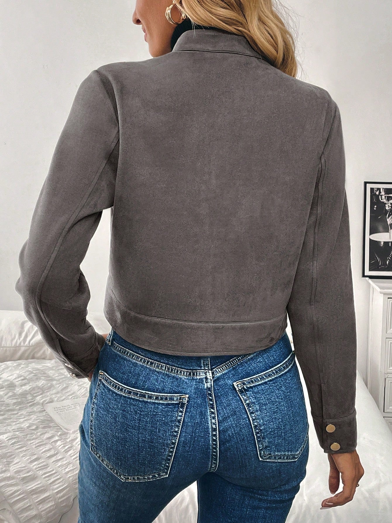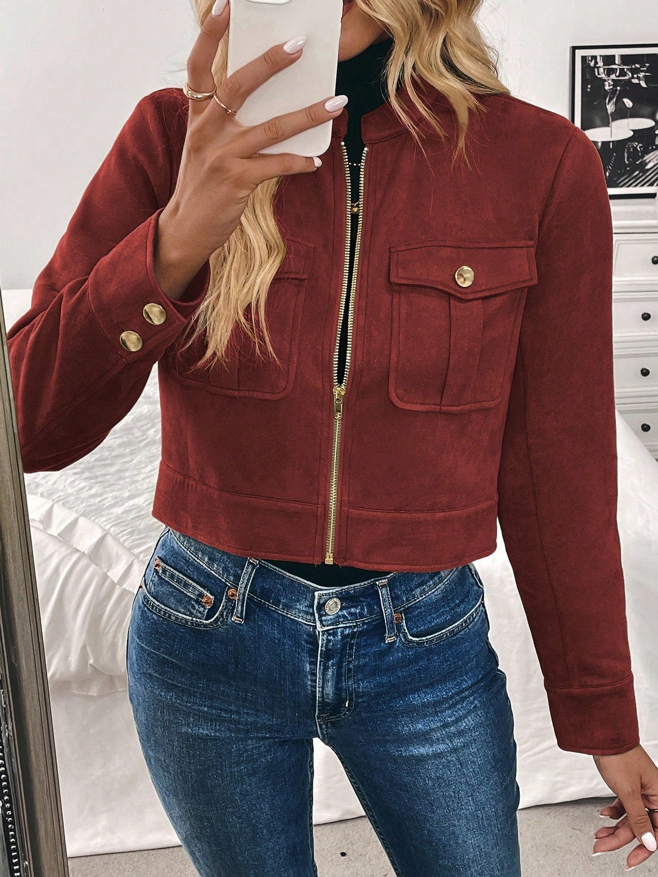 Women’s Black Military-Style Jacket – Short Zip Front Coat