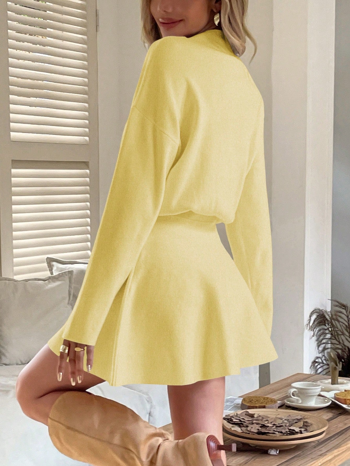 Women’s Knit Sweater Dress – Long Sleeve Ribbed Pullover Mini Dress